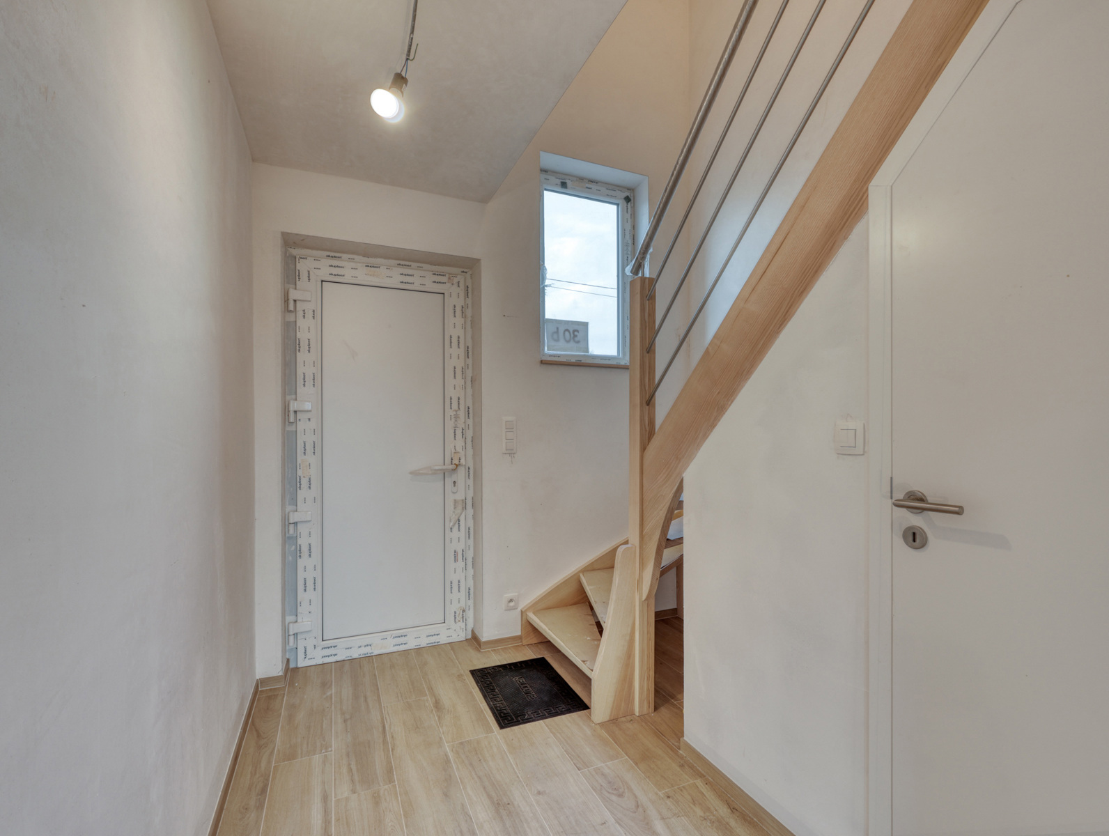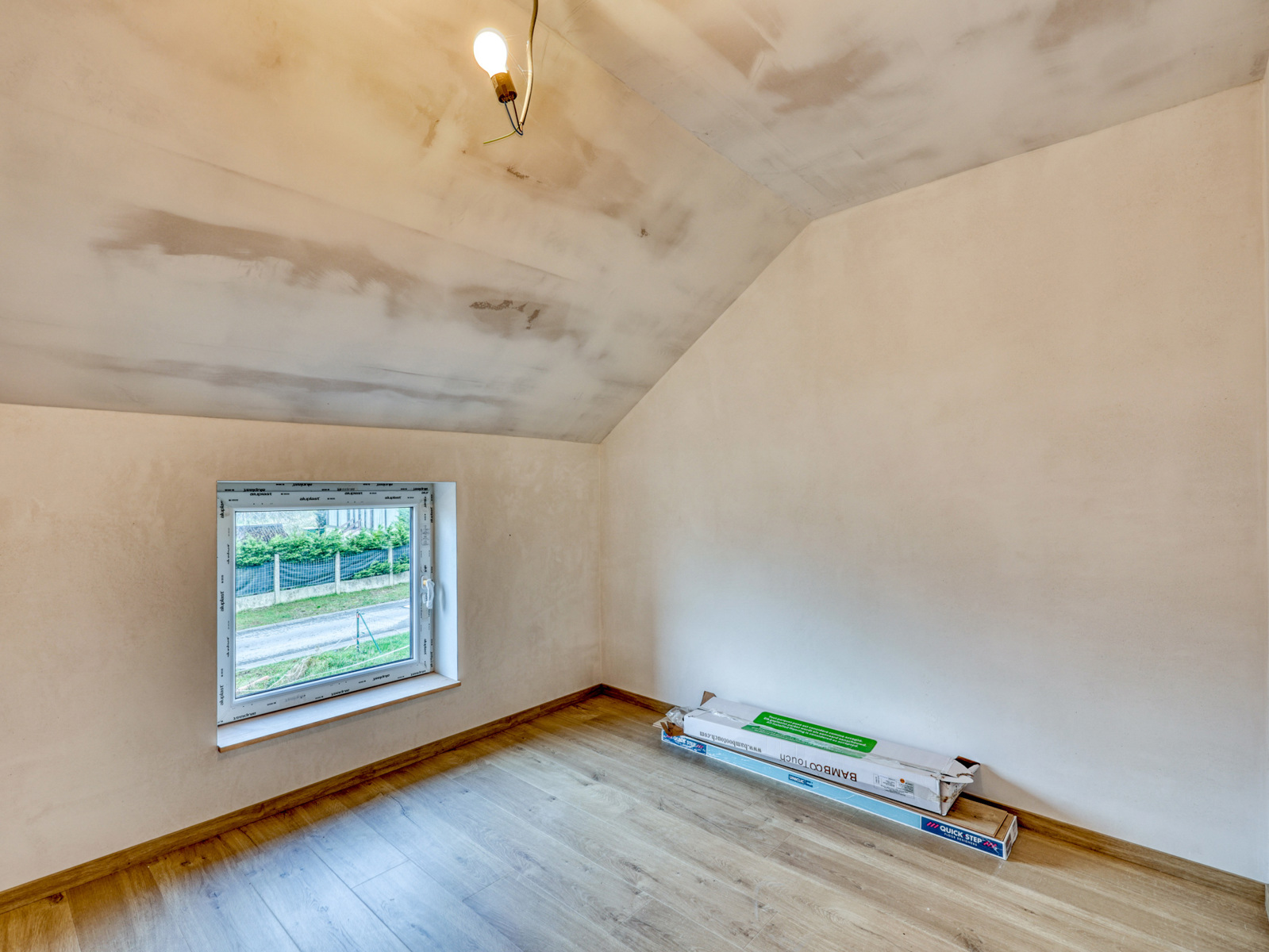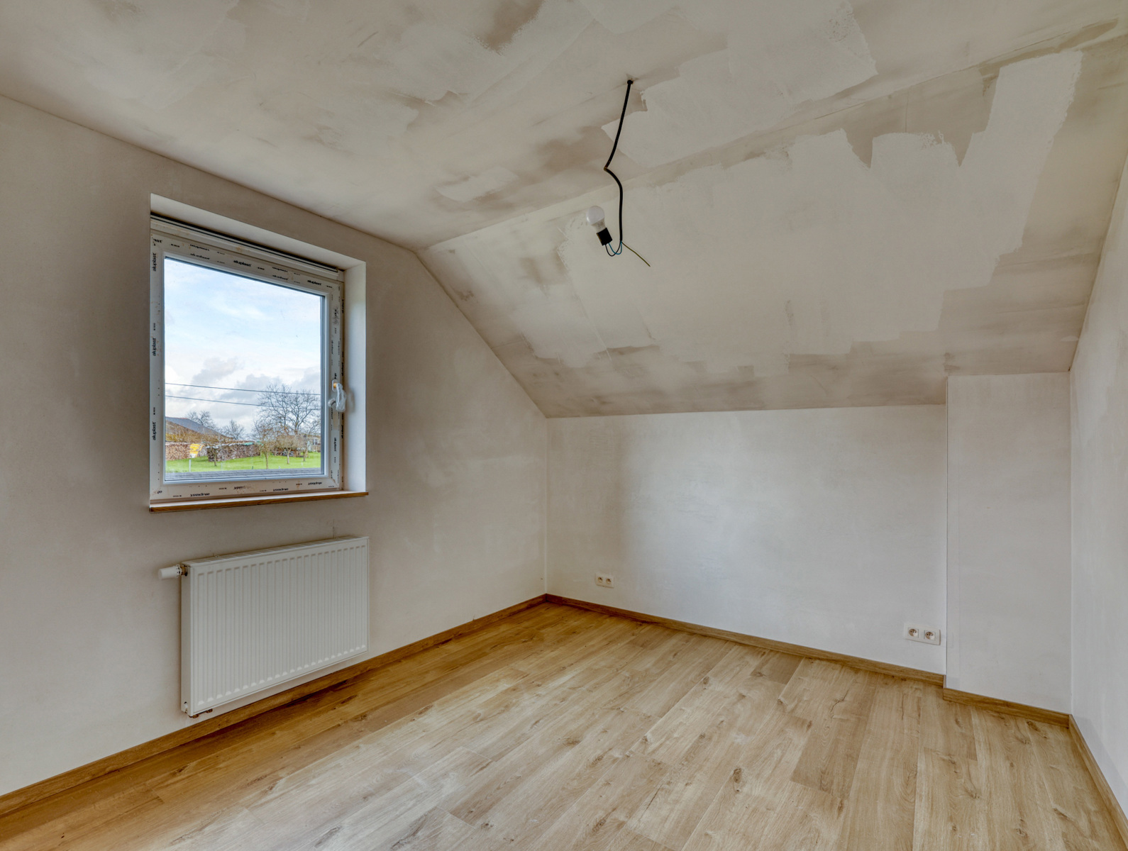 Venez découvrir cette jolie maison 4 façades et son grand jardin plein sud! La maison est située à deux pas des commodités et des axes routiers principaux tout en restant dans un milieu rural. Pour la composition du bien, vous trouverez : au rez-de-chaussée : un hall d'entrée avec WC indépendant, une buanderie, un living avec porte fenêtre donnant sur l'extérieur et ouvert sur la cuisine (cuisine non fournie), un garage. Au 1er étage : un hall de nuit desservant une salle de bain, un WC indépendant, 2 chambres dont une avec dressing et une pièce aménageable. ELECTRICITE CONFORME. Ce projet est vendu, prix affiché HTVA.